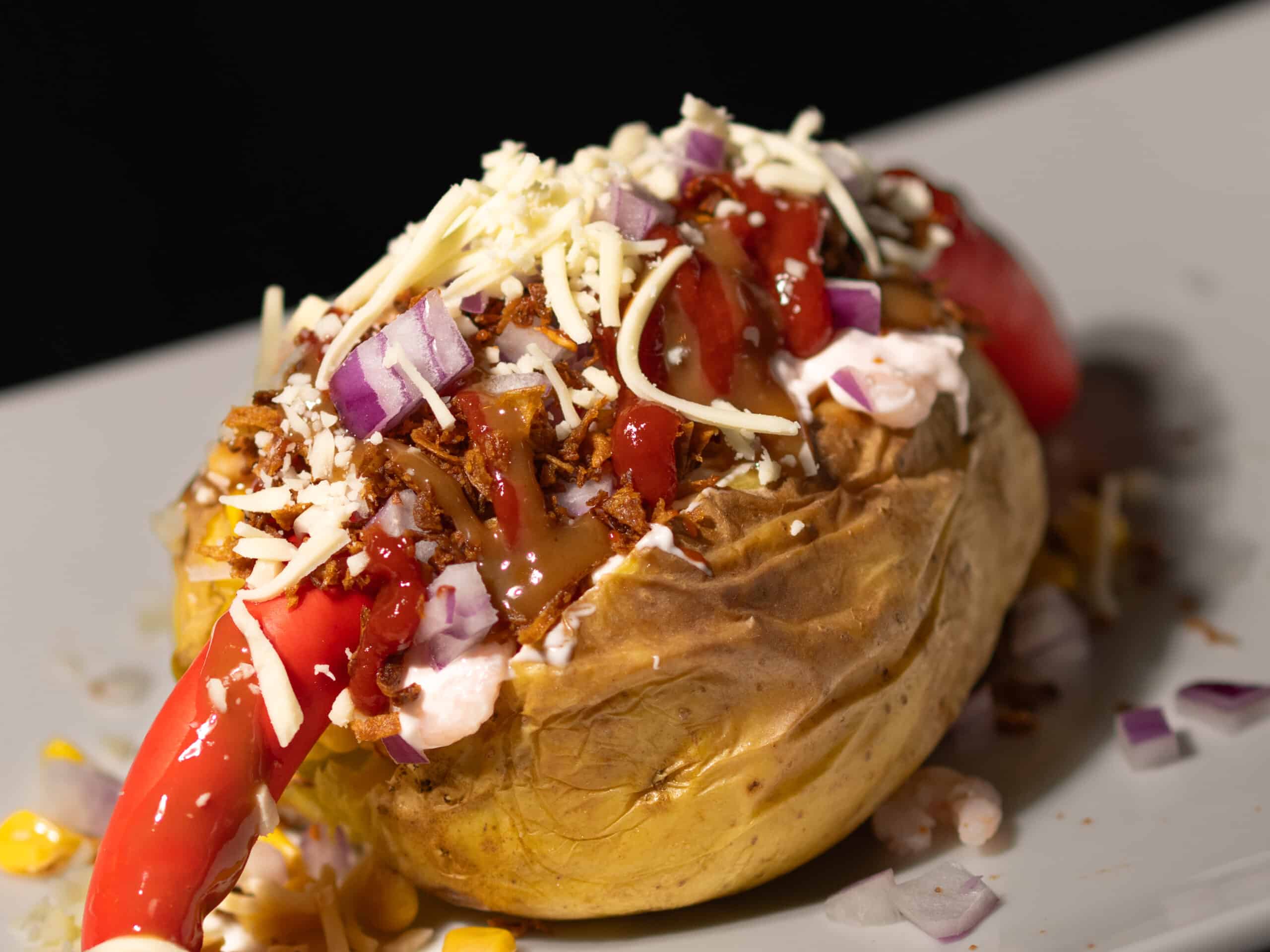 Opplev deilige baktpoteter med ferske lokale ingredienser og variert tilbehør hos Potetkongen.